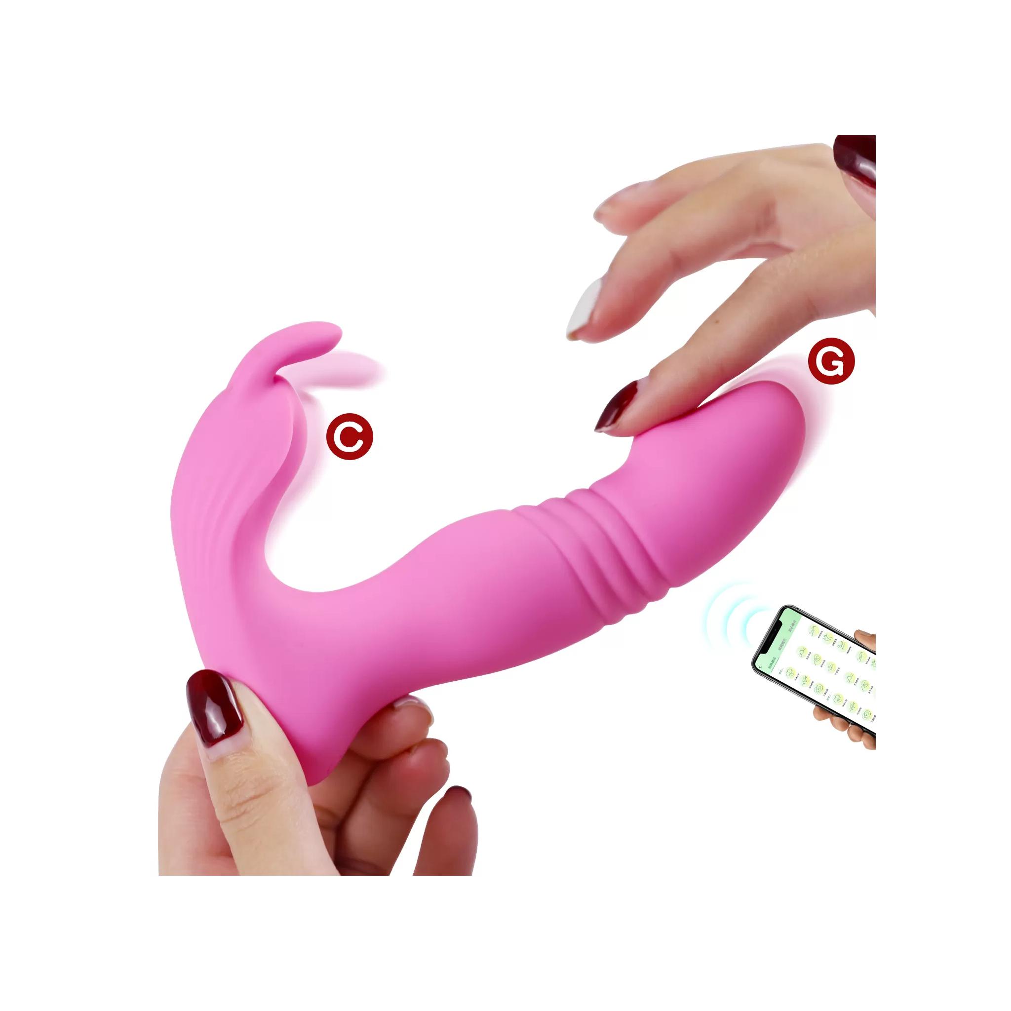 Telescopic App Vibrator - Bluetooth Telefon Kontrollü İleri Geri Hareketli Çift Motorlu Giyilebilir 2 in 1 Rabbit Vibratör
